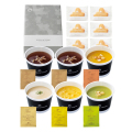 北海道の野菜を贅沢に使用した、ちょっとリッチな気分が味わえる一品です。北海道の大地で育った「かぼちゃ、玉葱、男爵いも、スイートコーン、アスパラガス」の5種類のお味がお楽しみいただけます。北海道素材の美味しさをギュッと詰め込んだスープギフトです。かわいい北海道型クッキーが付いています。【スイートコーンスープ】北海道の甘みの強いスイートコーンを贅沢に使い、クリーミーな味わいでうきみのコーンもたっぷり入ったコーンスープです。【玉ねぎスープ】北海道の玉ねぎを使い、香辛料で上品に味付けしました。うきみもオニオンスライスがたっぷり入った本格的なオニオンスープです。【アスパラスープ】北海道の広大な大地で元気に育ったグリーンアスパラを、独自の製法により、アスパラの風味と栄養分をそのまま生かしたアスパラスープ。(クルトン入り)【かぼちゃスープ】北海道の甘みのあるカボチャを贅沢に使い、濃厚でカボチャの味が生きた北海道らしいスープです。(クルトン入り)【男爵いもスープ】北海道産の男爵いもを贅沢に使い、濃厚でクリーミーな味わいのクリームポテトスープです。