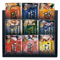 Bセット 全9種類。北海道のホタテをバジル調味液で煮込みました。醤油ベースでやわらかく煮込んだホタテ。北海道産ほっけを食べやすい旨煮でご賞味を。定番のさば味噌煮。根室産のサンマをトウガラシ入り旨辛煮に仕上げました。梅酢ベースでサンマの旨味を引き立てます。北海道のいわしを醤油ベースの旨煮でご賞味ください。こまい(漢字で氷下魚)はタラの一種です。北海道産の秋鮭をやわらかく仕上げました。