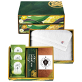 伝統と革新のその先に―宝乃菓 茶露の極み 二段箱。創業百余年、伝統のなかに進化を。抹茶かりんとう、かすてらを贈答用ギフトでお届けします。お口の中で広がる抹茶の香り抹茶かりんとう。和三盆糖と抹茶の贅沢なハーモニー抹茶かすてら。今治タオルを二段箱にてセット。
