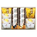 おもてなしにぴったりな、ほっこり和むお菓子の詰合せ。和の味わいをお楽しみください。豆菓子竹炭豆菓子きなこクリームをサンド欧風せんべい中身はあんこ小豆パイ欧風せんべいさっくりと焼き上げた歯ごたえのよい生地に、やさしく香るバニラクリームを挟みこんだ欧風せんべいです。小豆パイパイ生地で餡を包み、しっとりと焼き上げたお菓子です。豆菓子竹炭 : 一度食べるとくせになる、ピリッと甘辛醤油味の豆菓子です。きなこ : 落花生にきなこをたっぷり巻き込み、仕上げた豆菓子です。