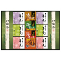 抹茶入り煎茶80g×2・あられ(海老・海苔・味噌)各12g・羊かん(抹茶・練り・小倉)60g×各2