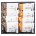 濃厚なショコラブラウニーにアーモンドフレークをトッピングしたショコラブラウニーとキャラメル風味のブラウニーの詰合せです。