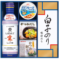 キッコーマンの生ならではの鮮やかな色、さらりとした旨味が特徴のしぼりたて生しょうゆをはじめ、国内産の原材料をブレンドし、やさしい味わいに仕上げた風味豊かなだしの素などバラエティ豊かなセットです。