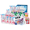 ニュービーズローズ&マグノリアの香り(本体690g×3・詰替560g×4)・トップクリアリキッド抗菌(本体)450g・CHARMY Magica除菌+220ml・CHARMY Magica酵素+(オレンジの香り・フレッシュピーチの香り)各220ml・キレイキレイ薬用ハンドソープ(本体250ml・詰替200ml×3)・洗濯槽クリーナー(5錠箱入)・ネットスポンジ