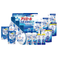 抗菌洗剤アリエールと、少量でたくさん洗える濃縮タイプの食器洗剤除菌ジェル、室内干しのイヤなニオイを防ぎ、ふっくら柔らかく仕上がる抗菌・消臭ソフターのギフトです。