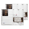高吸水加工を施した「泉州タオル」と心地良い純白の「今治タオル」それぞれの良さをお楽しみ下さい。二段の箱にてお届けいたします。