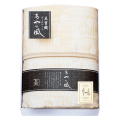 一般的な五重織とは異なり、一層目から五層目までを太さの違う糸や素材で織り込むことによって、たくさんの空気の層をつくり、ふんわり柔らかな感触が生まれました。軽くてふんわり柔らか。素材の良さを活かしたガーゼケットです。