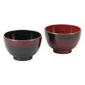 伝統の『山中塗』の技術を用いて鮮やかに彩られた金縁と、黒と朱のコントラストが美しいぼかし塗の汁椀セットです。(※食器洗浄機対応)