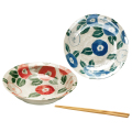 魯山人の精神を引き継ぐ、椿の華麗な食器。伝統の技を受け継ぎながらも、どこか新しさを感じるデザイン。この椿柄の食器で、食卓に華やぎを添えてください。