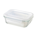 商品130×175×62mm(660ml) 本体:耐熱ガラス・蓋:ポリプロピレン(-20℃?120℃)・蓋パッキン:シリコーンゴム・ざる:ポリプロピレン(-20℃?140℃)