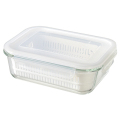 商品155×205×69mm(1.0L) 本体:耐熱ガラス・蓋:ポリプロピレン(-20℃?120℃)・蓋パッキン:シリコーンゴム・ざる:ポリプロピレン(-20℃?140℃)
