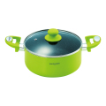 商品(2.7L)335×206×143mm 本体:アルミニウム合金(内面マーブルフッ素樹脂加工)・はり底:ステンレス鋼・フタ:強化ガラス・取っ手・ツマミ:フェノール樹脂(シリコン樹脂塗装)