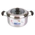 丈夫かつ熱が均等に伝わる3層底が特長の両手鍋。蓋には強化ガラス製の窓付きで、蓋をしたまま調理の具合を見ることが可能。