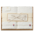 安全性の高い製法で綿を純化し、綿本来の吸水性を最大級に引き出す匠の技「今治本晒」。職人のこだわりがこの白さにたどり着きました。そして美しい瀬戸内海の波や来島海峡の渦を今治が誇るジャガードで表現しております。