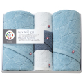バスタオル(60×110cm)×2、フェイスタオル(34×75cm)×1、ウォッシュタオル(34×30cm)×2 <パイル:綿70%(オーガニックコットン)・ポリエステル30%(再生ポリエステル)、グランド:綿100%>