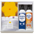 チャーミーマジカ(オレンジの香り・除菌プラス)×各1、ウォッシュタオル(28×30cm)×1、マイクロファイバークロス(25×25cm)×2、スポンジ×1 <マイクロファイバークロス:ポリエステル80%・ナイロン20%、ウォッシュタオル:綿100% >