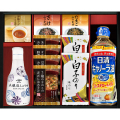 ヤマサ鮮度しょうゆ・日清キャノーラ油・オクラ入ねばねば野菜スープ×各1、おみそ汁(とうふと油揚げ・2種のきのこの赤だし・あおさとわかめ)×各1、丸美屋ふりかけ(たまご・さけ各3P)×各1、洋風スープオニオン風味(3P)×1、白子のり味のり(8切5枚)×2