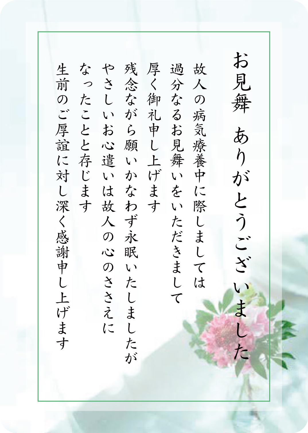 ● 「見舞」故人の生前お見舞をいただいたお礼を伝える