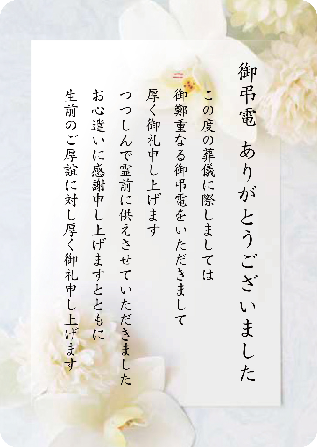 ● 「弔電」葬儀に際し御弔電をいただいたお礼を伝える