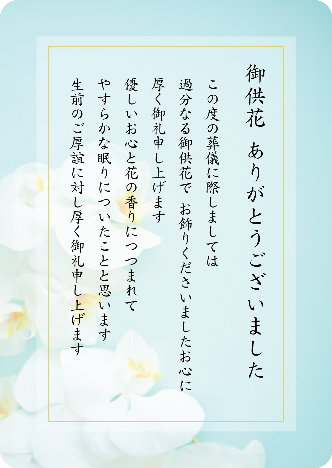 香典返しに伴せメッセージカードとして、