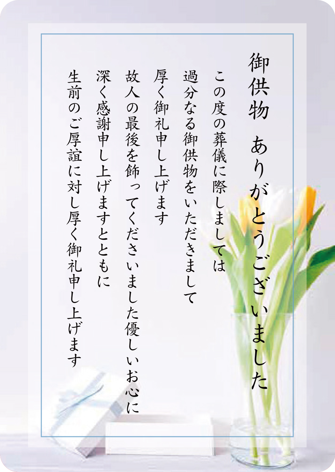 ● 「供物」果物やお菓子等の御供物をいただいたお礼を伝える